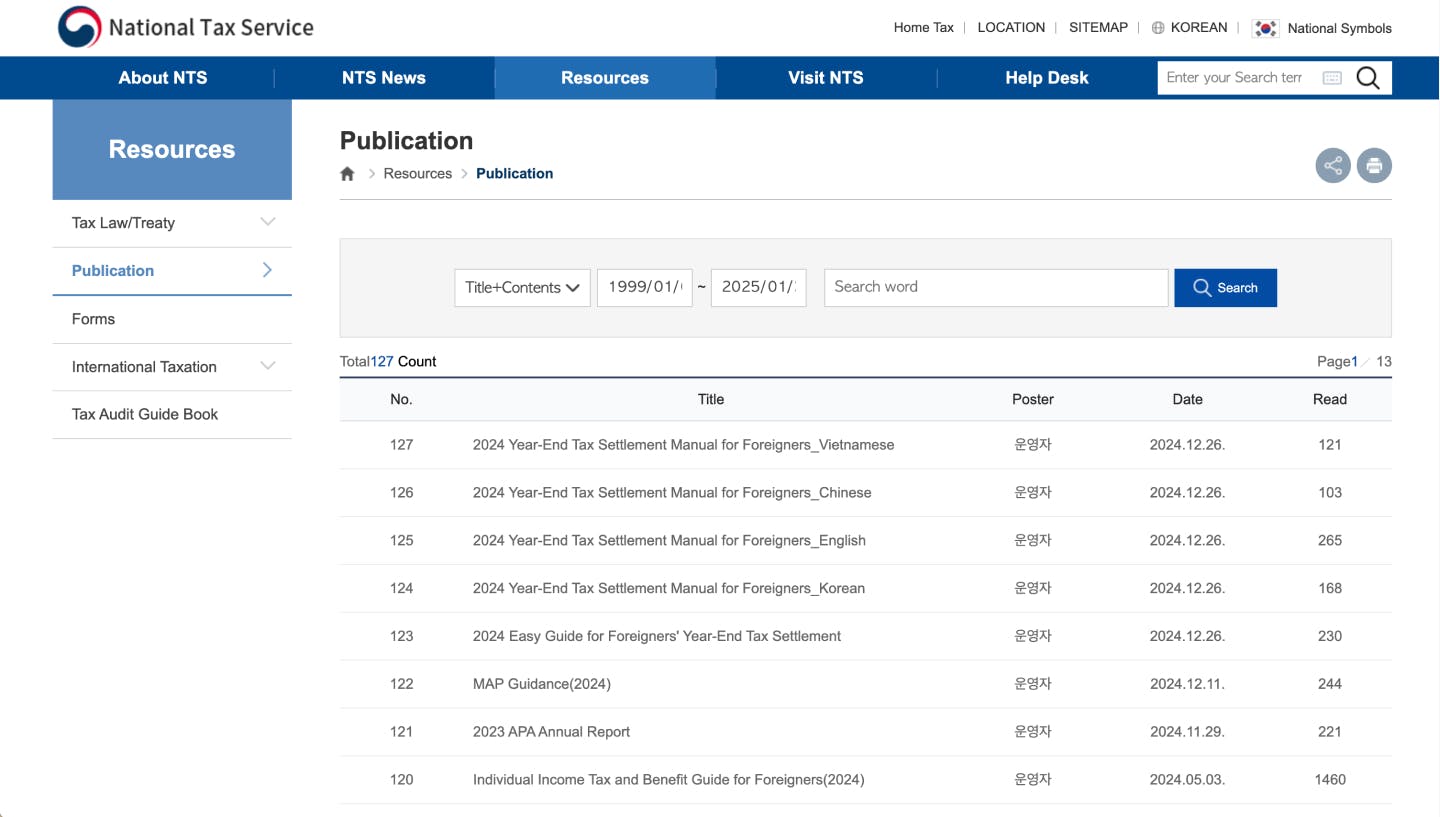 www.nts.go.kr/english/main.do > Resources > Publication > 2024 Easy Guide for Foreigners' Year-end Tax Settlement