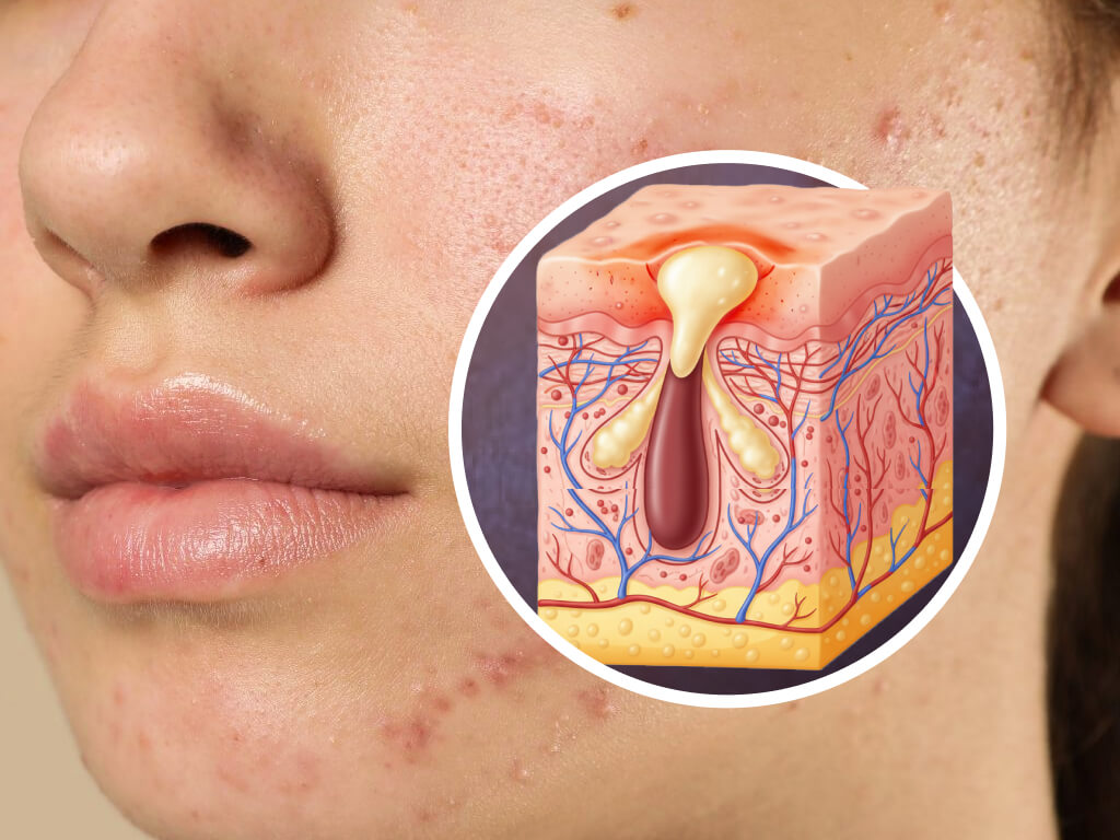 - Acne develops when pores become clogged due to excess sebum, irregular skin cell turnover, heavy makeup, or waste buildup.